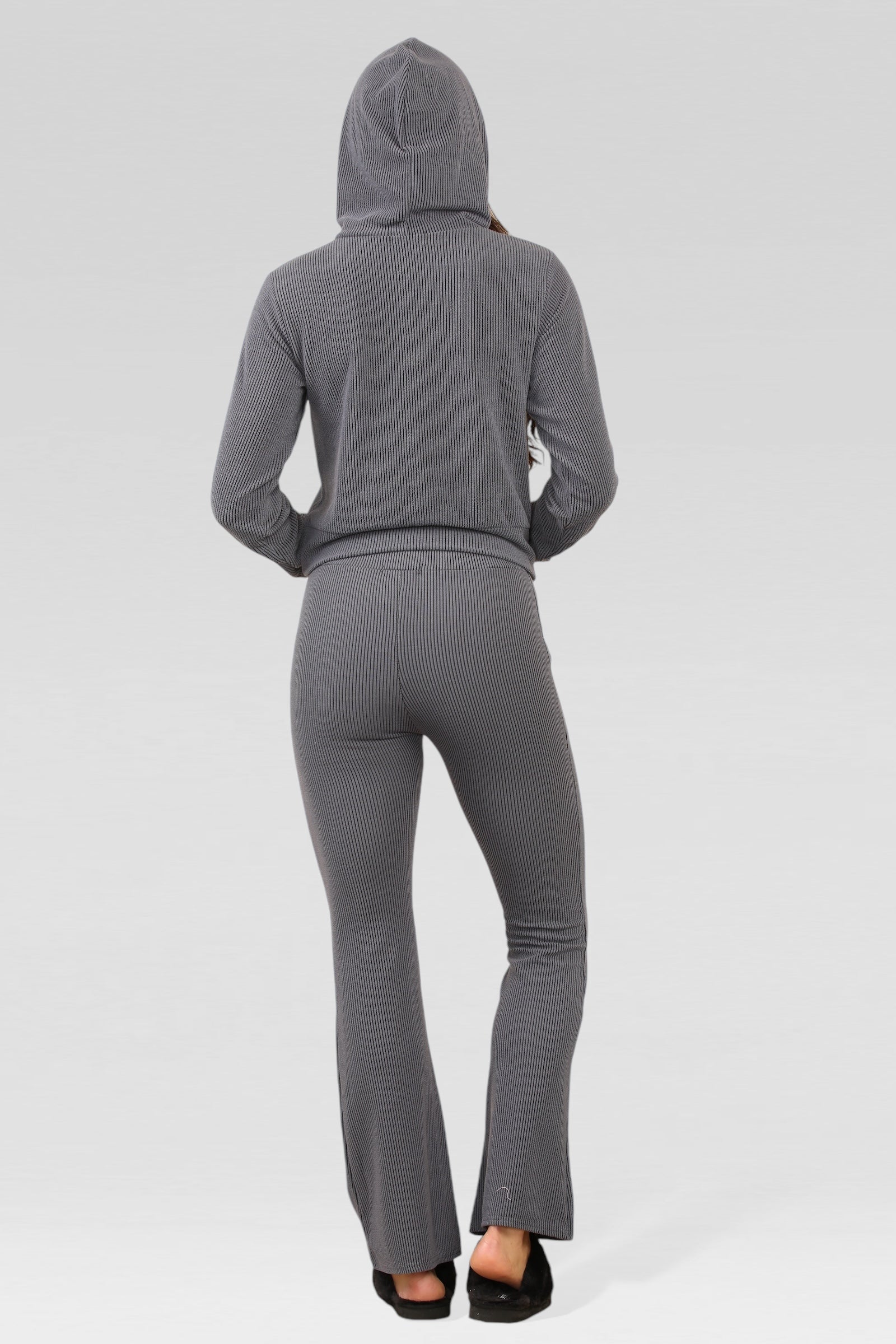 Slate Grey Ribbed Hooded Loungewear