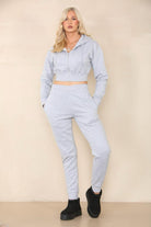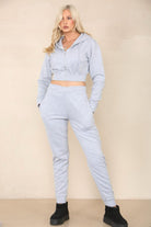 Light Grey Plain Cropped Hoodie Tracksuit