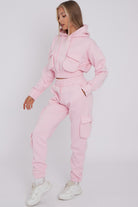 Pink Cropped Hoodie Cargo Tracksuit